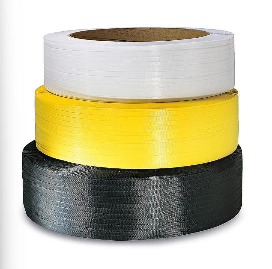 Fleje de polipropileno resistente, además pesa la mitad del fleje de acero.
