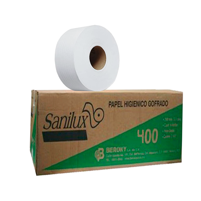 El papel higiénico Jumbo de la marca Sanilux es una opción de papel higiénico institucional diseñado para alto tránsito, caracterizado por su larga duración y resistencia.